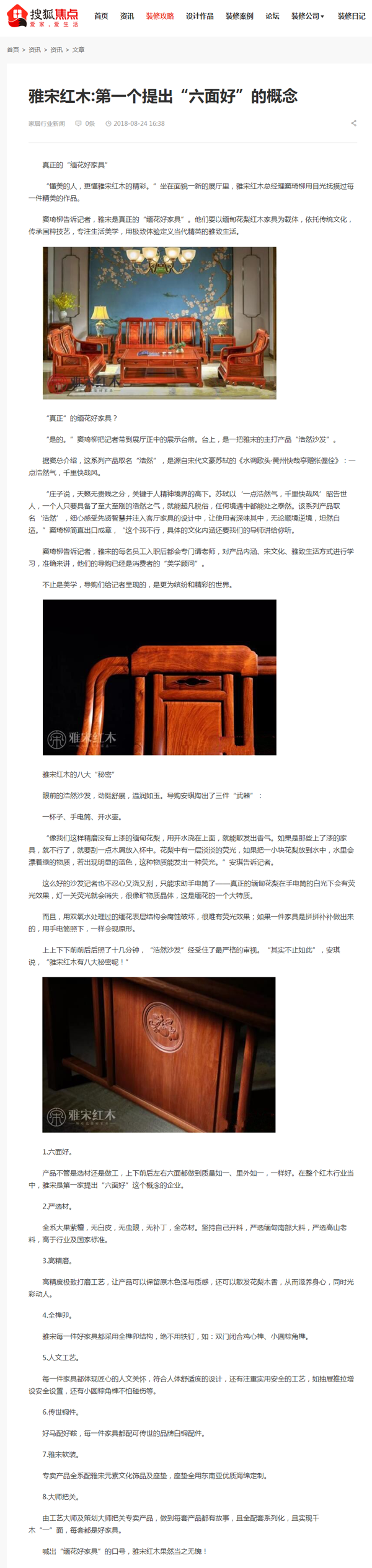 新聞動(dòng)態(tài) News 企業(yè)新聞 行業(yè)新聞 紅木知識(shí) 媒體報(bào)道 企業(yè)新聞 行業(yè)新聞 紅木知識(shí) 媒體報(bào)道 搜狐家居:雅宋紅木 第一個(gè)提出“六面好”的概念 信息來源:信息中心 更新時(shí)間:2018-09-08 收藏此頁 搜狐家居報(bào)道鏈接:https://home.focus.cn/zs/channel/fe7c6425fa64938c5ca5e39eefe25dee.html 【打印此文】 【關(guān)閉窗口】 上一篇:紅木家具發(fā)展的三個(gè)時(shí)期! 下一篇:沒有了